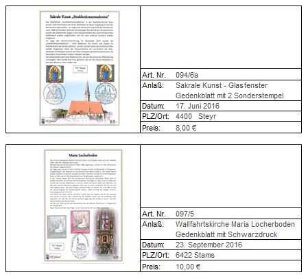 Neuheiten/Sonderstempel