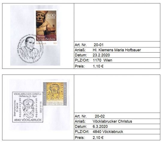 Neuheiten/Sonderstempel