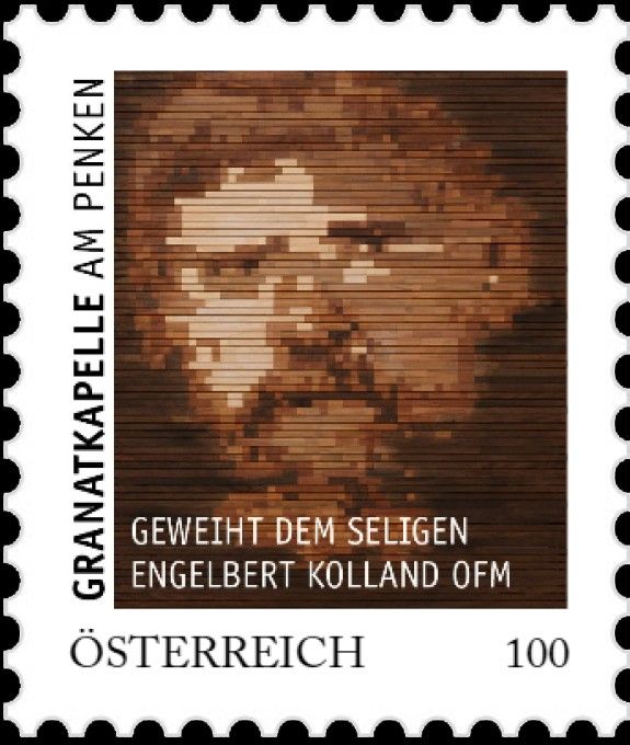 Die personalisierten Marken, die anlässlich des Ersttages am 16. Juli aufgelegt werden, zeigen das Bildnis des sel. Engelbert Kolland im Inneren, den Innenraum der Granatkapelle sowie eine Außenansicht des Geländes mit der Granatkapelle.