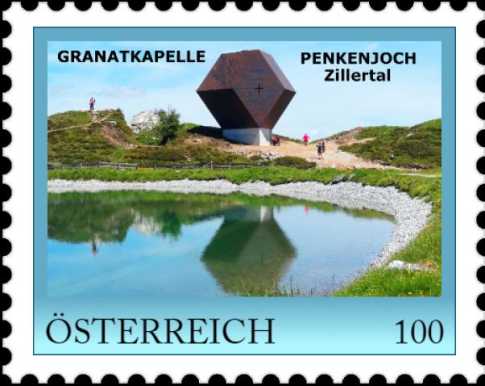 Die Sondermarkenserie „Moderne Architektur“ zeigt nun nach dem Motiv der Martin Luther-Kirche zu Hainburg erneut ein sakrales Bauwerk: die Granatkapelle am Penkenjoch bei Finkenberg/Mayrhofen i. Zillertal in 2087 m Seehöhe, ein Meisterwerk des weltbekannten Architekten der Tessiner Schule aus der Schweiz – Mario Botta. Aus Anlass des Ersttages dieser Sondermarke am 16. Juli 2021 richten der österreichische Philatelistenverein St. Gabriel, der BSV Zillertal und die österreichische Post AG im Almgasthaus Granatalm an diesem Datum im Almgasthof Granatalm von 10 bis 14 Uhr ein Sonderpostamt und eine Briefmarkenschau ein. Um 11 Uhr ist die Präsentation im Angesichte der Granatkapelle vorgesehen. Die Granatkapelle und der gleichnamige Gasthof sind mit den Finkenberger Almbahnen ab Finkenberg zu erreichen.
