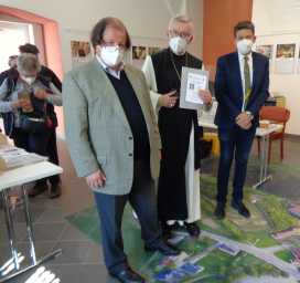 Hw. Abt Maximilian Heim OCist mit Gildeobmann Mag. Wilhelm Remes und Johann Erlach (Team Philatelie-Süd)