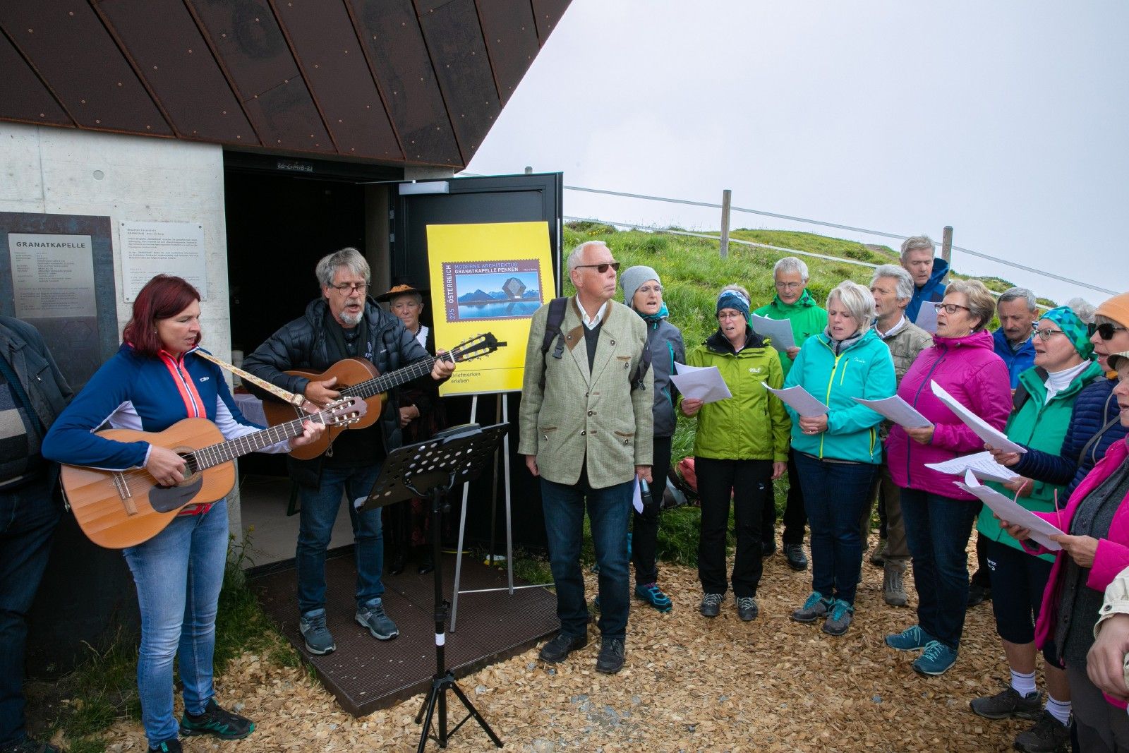 Am 16. Juli 2021 konnte noch rechtzeitig vor dem Wettersturz die Präsentation der Sondermarke aus der Serie Moderne Architektur „Granatkapelle am Penken“ auf über 2000 m Höhe direkt vor der genannten Granatkapelle präsentiert werden. Der Initiator der Briefmarke – Ehrenobmann der Gilde St. Gabriel Dr. Karl Ohnmacht – moderierte die Veranstaltung, zu der rund 100 Teilnehmer gekommen waren, und die vom Zeller Kirchenchorensemble unter der Leitung von Richard Pfister musikalisch umrahmt wurde. Das Sonderpostamt in der nahegelegenen Granatalm mit spektakulärer Sicht auf die Granatkapelle fand regen Zuspruch; der Vereinsobmann des BSV Zillertal / LGW Gilde St. Gabriel – Günter Mair – und der Verkaufsleiter der philatelistischen Belege – Hans Soriat - waren hoch zufrieden. Neben den Genannten sei der Stifterfamilie der Kapelle – Familie Brindlinger -, der österreichischen Post AG und Eduard Pudek für die sichere Auffahrt des Postautos mit dem Sonderpostamt-Team (Renate Rebhandl, Yvonne Schneider) über die kurvenreiche Gebirgsstraße auf die Granatalm herzlich gedankt. Es war zudem ein Geschenk, dass wir mit Prälat Mag. Leopold Städtler mit seinem biblischen Alter von 97 Jahren nach seiner schweren Erkrankung begrüßen konnten, nun mit ihm die Gildetage im Zillertal verbringen bzw. mit ihm die hl. Messe in der Burgschrofenkapelle nahe Mayerhofen feiern durften.