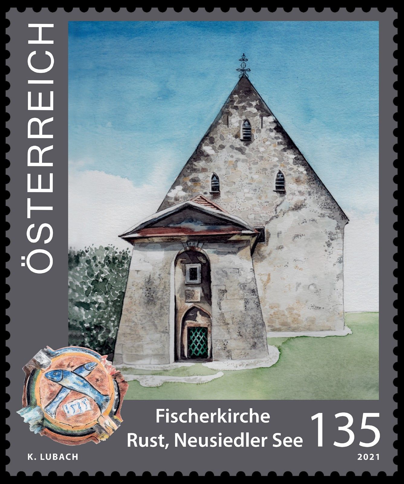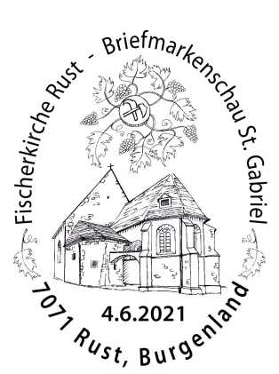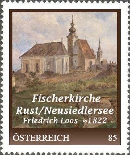 Freitag, 4. Juni 2021, Pfarre Rust, Rathausplatz 16, 7071 Rust, Ersttag der Sondermarke „Fischerkirche Rust“ v. Kirsten Lubach: Sonderpostamt geöffnet von 11 bis 17 Uhr; Präsentation um 16 Uhr (Anmeldung erbeten bei heinz.peroutka@aon.at bzw. 01 9148950). Führungen in der Fischerkirche werden für Kleingruppen ab 14 Uhr möglich sein. Die PBM zeigt ein Aquarell von Friedrich Loos mit der Ansicht des Ruster Kirchenensembles um 1822.