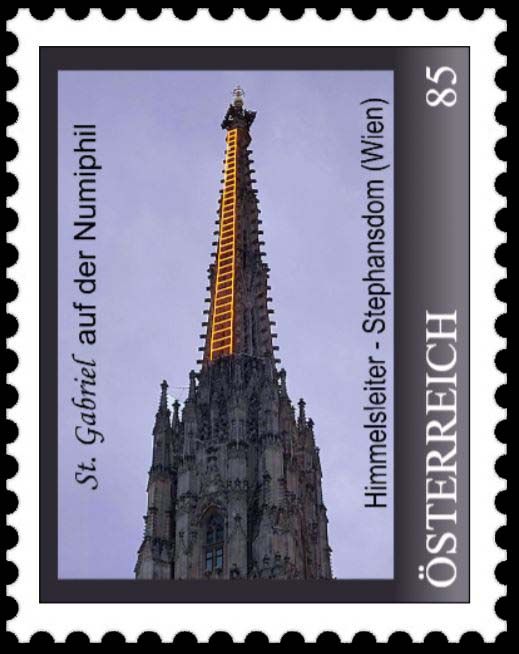 Das Motiv zeigt die jüngste Installation der Künstlerin Billi Thanner: Die an der Jakobsleiter inspirierte Himmelsleiter ziert seit Ostern 2021 den Südturm des Stephansdomes. Die Marke wird anlässlich unserer Präsenz bei der Numiphil 2021 aufgelegt.