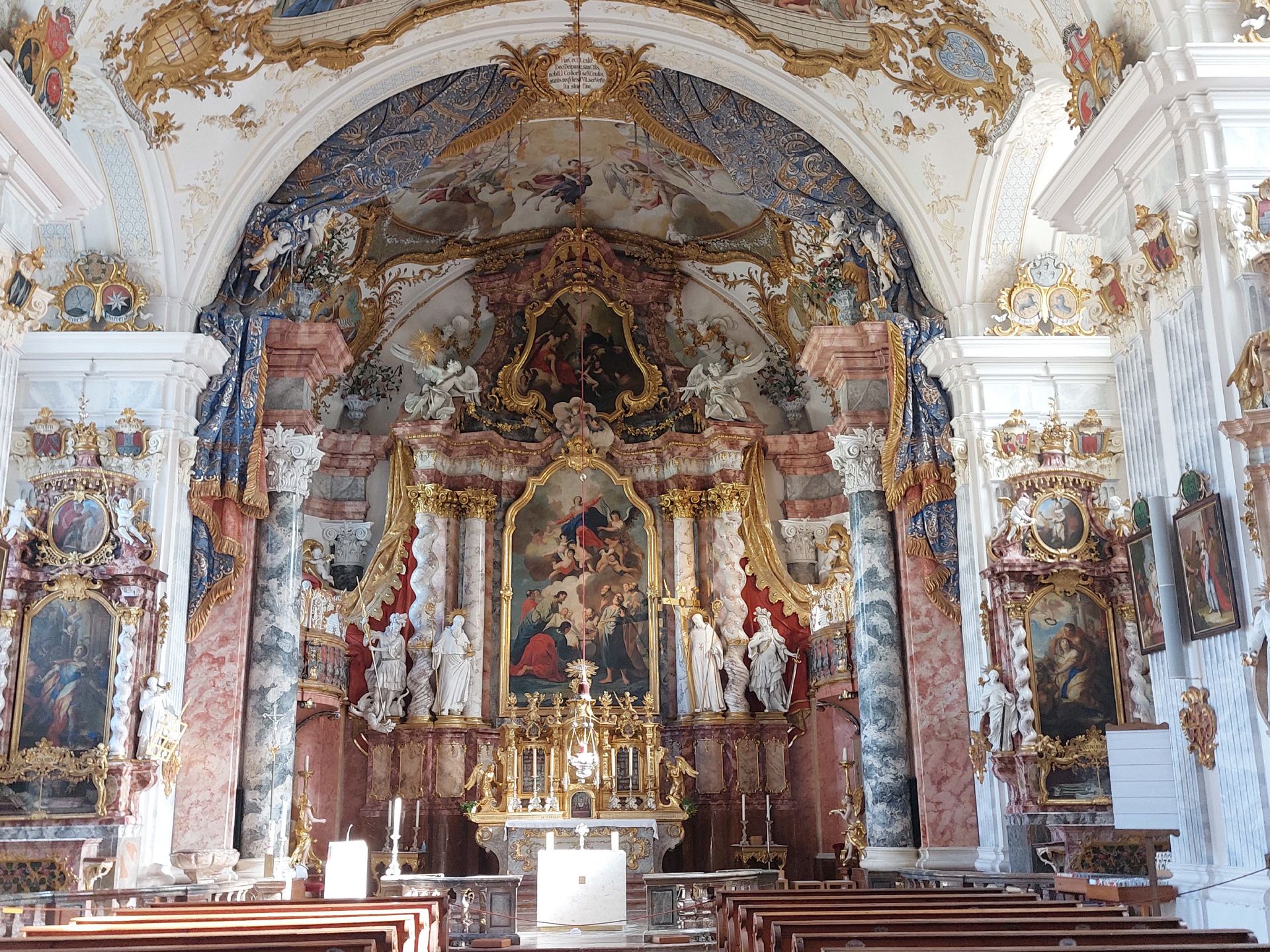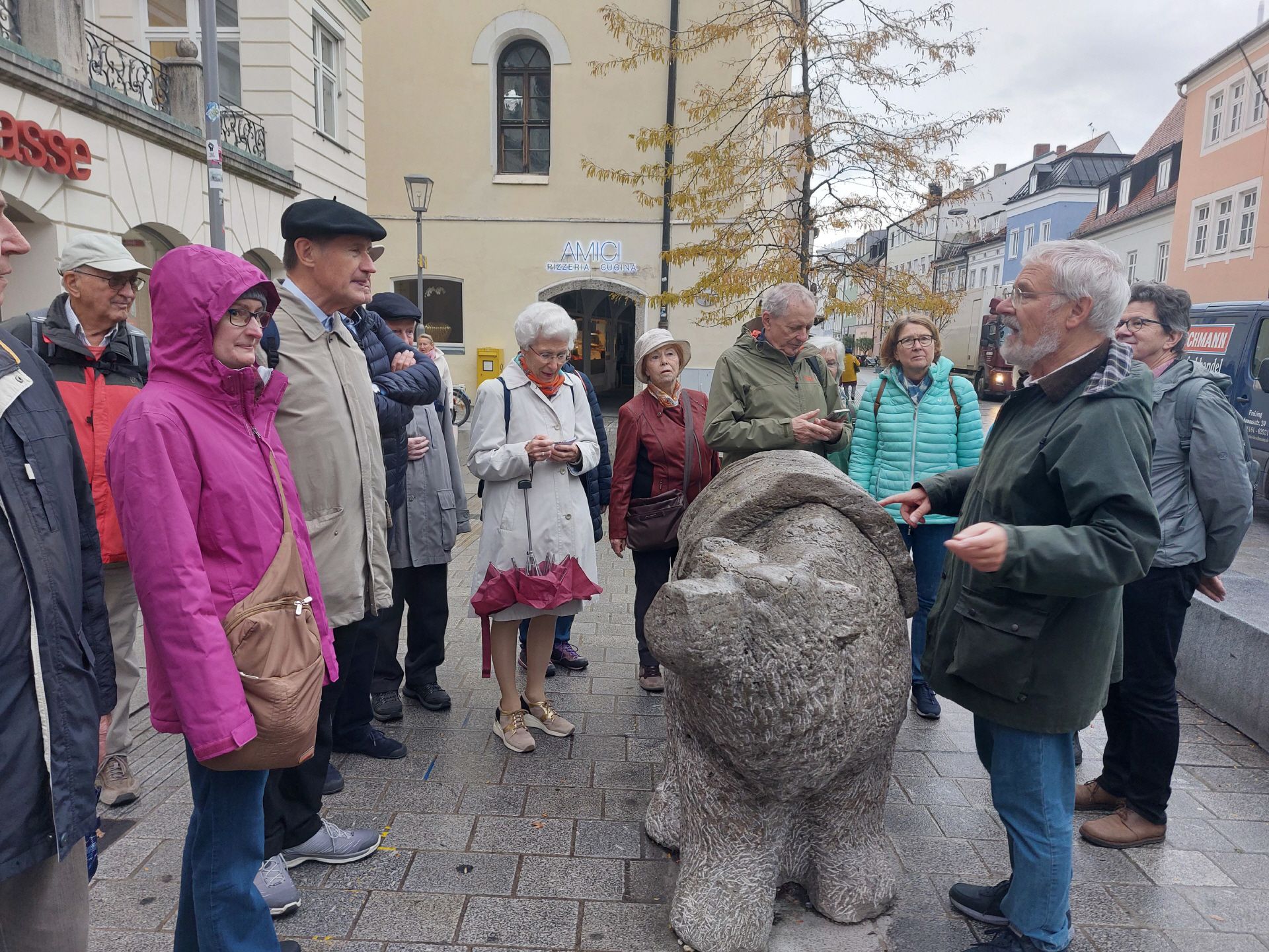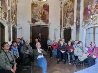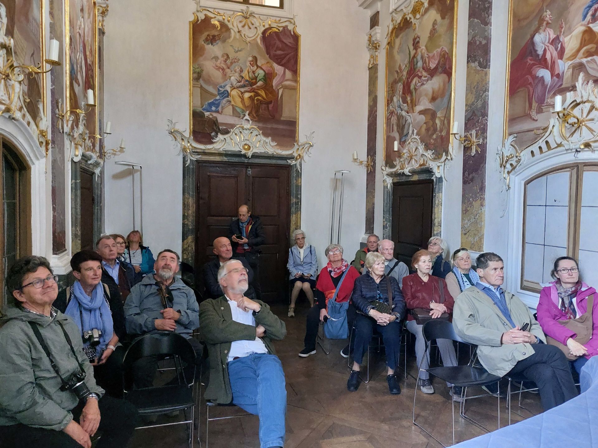 21 Teilnehmer reisten aus allen Richtungen (Wien, Linz, Kärnten, Graz) an, um sich in Salzburg-Taxham mit den lokalen Gabis dort zu vereinigen, um gemeinsam unter der Leitung von GB Dr. Wilhelm Deuer die viertägige Reise des Kunstgenusses und zur bayerischen Küche mit dem Bus der Fa. Neubauer anzutreten. Ausnahmsweise spielte die ÖBB mit, sodass wir nach einer Ehrenrunde nahezu pünktlich Raitenhaslach erreichten, wo es uns der erste Traum des Rokokos sowie gestandene bayerische Wirtshausküche erwartete. Über das ehemals salzburgische Mühldorf und Großthalheim erreichten wir unser Hotel in Freising, das tatsächlich sehr zentrumsnah lag. Der erste Tag galt Freising selbst mitsamt der näheren Umgebung, wo der Dombezirk anlässlich des 1300. Jubiläum des hl. Korbinian in Freising mittels eingehender und gut organisierter Führungen erkundet wurde. Bei wechselhaftem, jedoch nicht sehr kaltem Wetter besuchten wir am Nachmittag die ehem. Prämostratenserkirche Neustift, die Wieskirche (ein pittoreskes Beispiel bayerischer Volksfrömmigkeit) sowie den romanisch dominierten Kastulusmünster in Moosburg. Die jeweiligen Abende klangen im Freisinger Hofbräuhauskeller aus, wo im Reisepreis inkludiert aus reichhaltiger Auswahl opulente Gerichte mit typisch bayrischer Hausmannskost genossen werden konnten. Den dritten Tag widmeten wir der ehemaligen Klosterkirche Ilmmünster und der Benediktinerabtei Scheyern sowie nachmittags der ehemaligen Residenzstadt Landshut, deren großer Stadtplatz mit der hoch aufstrebenden Martinskirche, die Burg Landshut (incl. Marsch hinauf & hinunter – auch von GB Alfred Vogel bravorös bewältigt!) und der Rathausprunksaal mit seinen historisierenden Malereien rund um die Landshuter Hochzeit sehr beeindruckten. Auch der Rückreisetag nach Salzburg wurde noch intensiv genutzt. Die Landschaft wurde nach der Besichtigung der ehem. Jesuitenkirche in Ebersberg im Sinne des bayerischen Alpenvorlandes immer reizvoller, ehe wir das in einer Innschleife gelegene Wasserburg erreichten, wo auch die Mittagspause anstand. Ein reizvoller Ausklang wurde uns mit dem Besuch der Klosteranlage von Seeon geboten, das neben seiner einzigartigen Lage im See mit wechselvoller Familiengesichte (darunter Nachfahren Napoleons und eine vermeintliche Tochter des letzten russischen Zaren) nach der Aufhebung des Klosters zu interessieren wusste. Bilanzierend darf man anmerken, dass es eine sehr harmonische und gemütliche Fahrt ohne weite Entfernungen war; das Programm konnte wie geplant durchgeführt werden, die flüssige Versorgung im Bus war in Ansätzen gewährleistet und erreichte freilich nicht die Intensität, als wenn unser sehr vermisster Alfred Graf mitgewesen wäre. Abschließend dürfen wir nochmals Dr. Wilhelm Deuer großen Dank für die Reiseleitung aussprechen, man fühlte sich wie bei einem Privatissimum im familiären Kreis!
