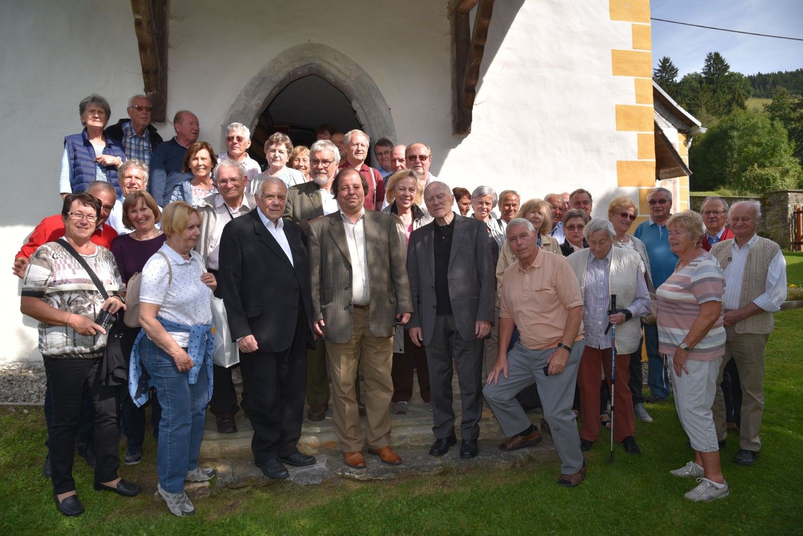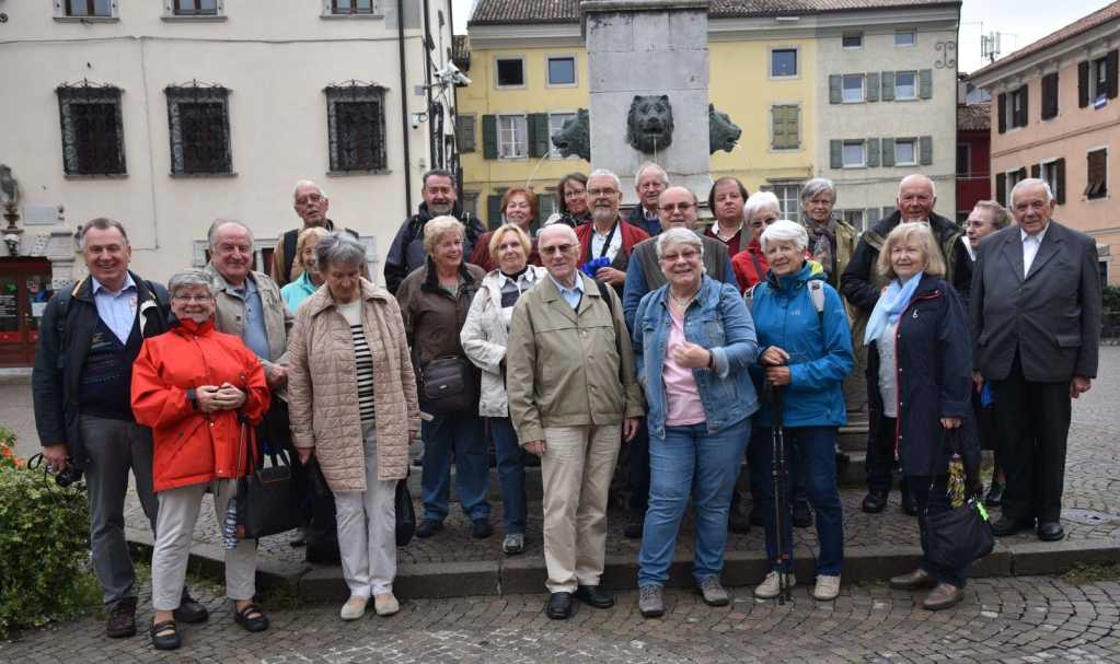 Rundum zufriedene Teilnehmer zeigt das Gemeinschaftsphoto vom 9. Oktober 2019 in Cividale, darunter Altbischof Dr. Maximilian Aichern (ganz links) und der älteste Mitreisende mit 94 Jahren – Generalvikar i. R. Prälat Mag. Leopold Städtler (vorne Mitte). Es konnte bei bestem Reisewetter Bekanntes (Triest, Cividale, Aquileia) und weniger Bekanntes (Wippachtal, Hl. Berg, Castagnavizza) ohne jeglichen Touristenansturm besichtigt werden. Dazu beigetragen haben unser Reiseleiter GB Dr. Willi Deuer und unser GB Ivan Mohar aus Slowenien, der uns viele Programmpunkte in Slowenien vermittelt hat. Liturgischer Höhepunkt war die Gildemesse auf der Laguneninsel S. Barbana, die von den genannten geistlichen Herren zelebriert wurde. Grado zeigte sich von seiner schönsten Seite, man sah hinüber bis Piran auf der anderen Seite der Adria! Gradisca mit dem exzellenten Hotel Franz erwies sich als zentraler, ruhiger und übersichtliche Ausgangsort für unsere Ausflüge, auf denen wir wie immer verlässlich von einem Bus der Fa. Neubauer aus Altenberg b. Linz chauffiert wurden. Freilich durfte auch ein zünftiger Abschluss in der Triestiner Weinschank Milic nicht fehlen.