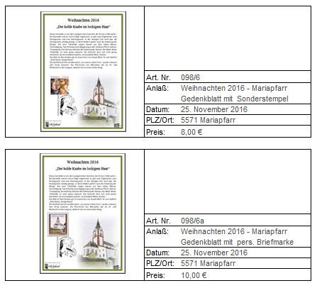 Neuheiten/Sonderstempel