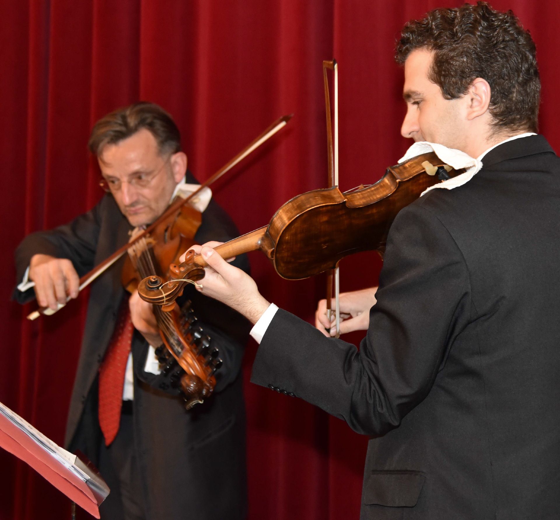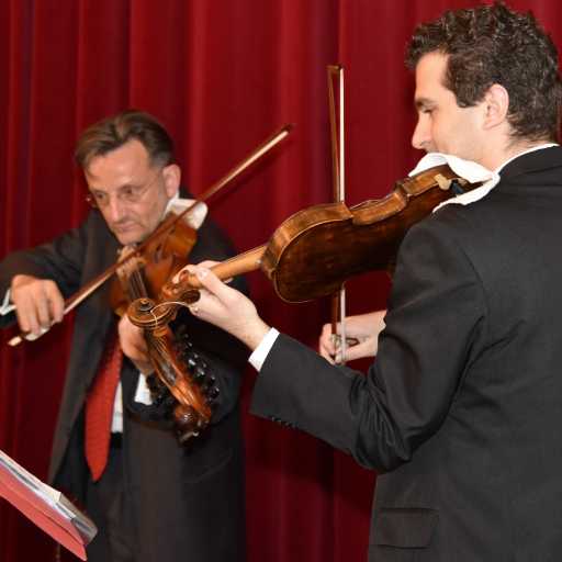 Bild 1: Das Streichduo aus dem Concilium Musicum (links Christoph Angerer mit Viola d'amore) umrahmte die Präsentation mit Stücken aus dem Repertoire von Ignaz Pleyel und Carl Stamitz, beide Zeitgenossen des hl. Klemens Maria Hofbauer.