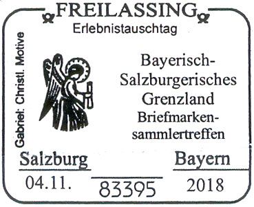 4. November: Teilnahme an dem Bayerisch-Salzburgisches Grenzlandtreffen in der Mehrzweckhalle Freilassing (Prielweg 5), Hans Soriat ist mit einem Gabriel-Stand vor Ort! Es kommt ein Sonderstempel mit Gabriel-Motiv zum Einsatz!