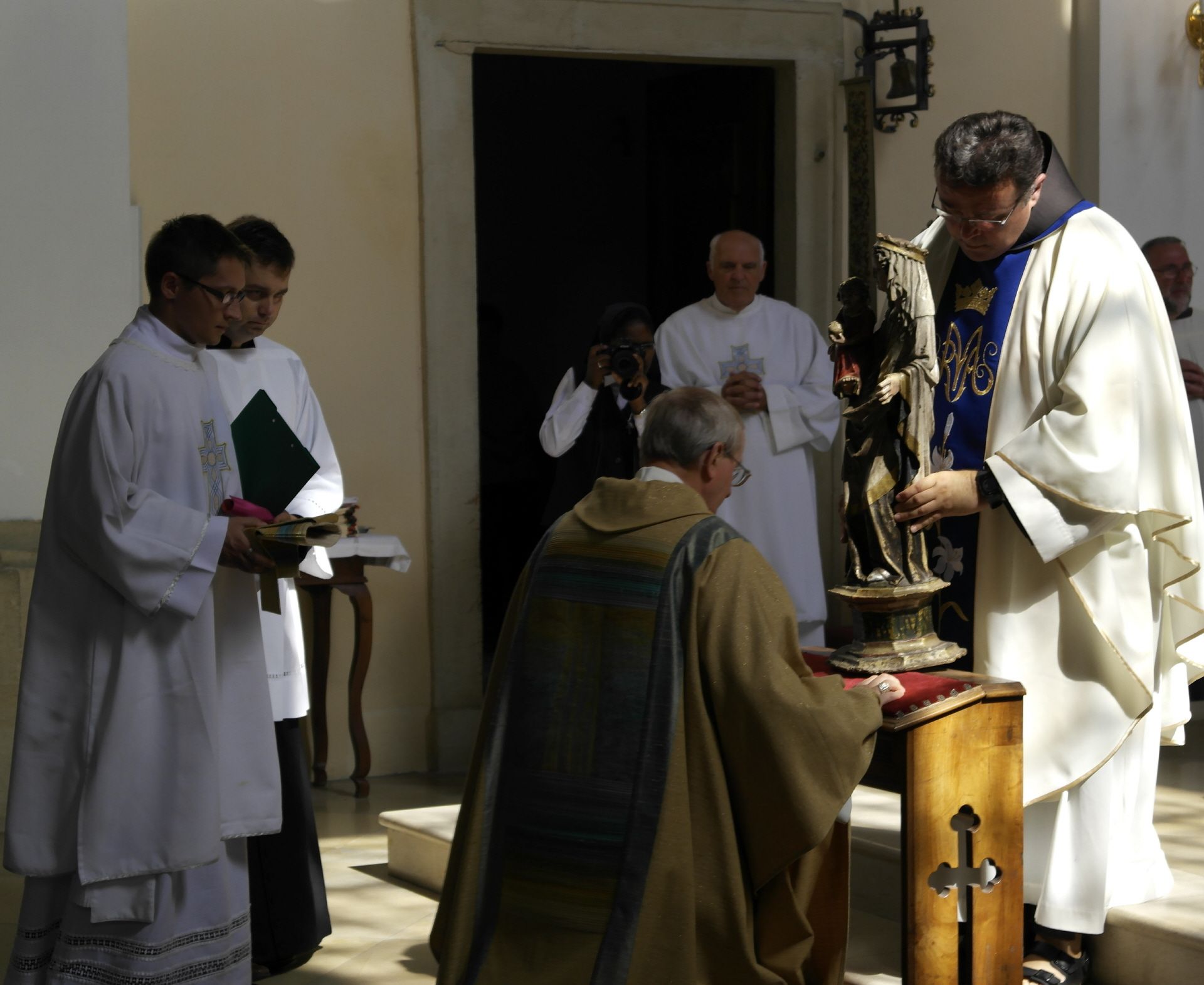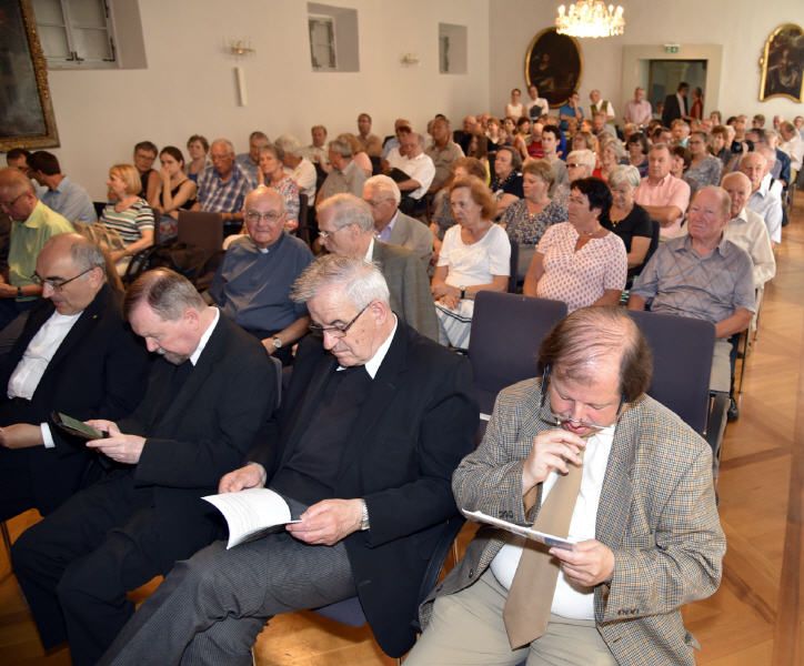 Drei Länder (Österreich, Slowakei, Ungarn), vier Sprachen (Deutsch, Kroatisch, Slowakisch, Ungarisch) prägten das Hochamt zu Maria Geburt in der Basilika Frauenkirchen, das anlässlich der Dreiländerwallfahrt der Briefmarkenpräsentation voranging. Ganz gebannt von einer „Machtdemonstration des Glaubens“ – wenn die Gläubigen in der vollbesetzten Kirche „Großer Gott wir loben dich“ bzw. „Glorwürdige Königin“ erklingen lassen und beeindruckt von der Erteilung des Einzelsegens vor der Gnadenstatue fanden sich die Teilnehmer in der Präsentation der neuen Briefmarke wieder, moderiert vom Gastgeber und Hausherrn P. Mag. Thomas Lackner ofm. Obmann Mag. Remes freute sich Pfarrer Jan Vallo (Obmann der slowakischen Gilde St. Gabriel) begrüßen zu können. Bischofsvikar Mag. Karl Schauer OSB brach in seinem Statement eine Lanze für die Existenz und Verwendung von Briefmarken mit christlichen Motiven und hob das langjährige Engagement des österreichischen Philatelistenverein St. Gabriel besonders stark hervor. Nach einer „ökumenischen“ Kirchenführung von Mag. Gerlinde Scholler und abschließenden Worten des Provinzsekretärs Br. Pascal Hollaus ofm wurde die Briefmarkenschau im Großen Pfarrsaal offiziell besichtigt. Schlussendlich folgte die Einladung in das historische Refektorium des Klosters, wo die Teilnehmer 21. September 2018, Salzburg ein reichliches warmes Buffet erwartete.