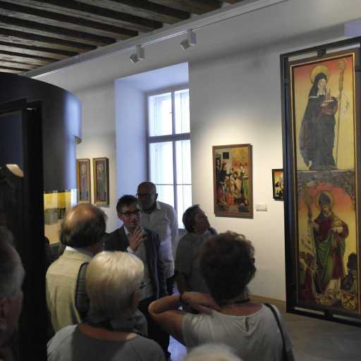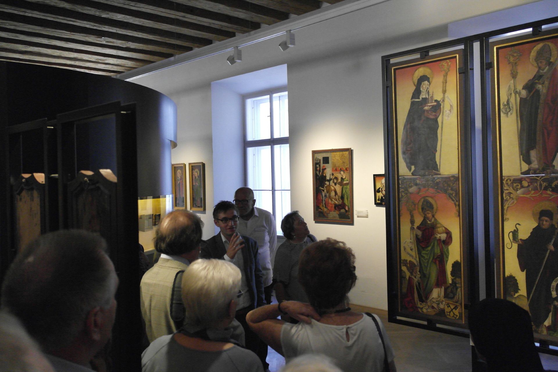 Unmittelbar neben dem Treiben des Rupertimarktes in Salzburg bauten die Vereinsmitglieder frühmorgens unter Führung von GB Norbert Philippi und LGW Franz Radauer die Briefmarkenschau im Foyer des Erzbischöflichen Palais auf, denn das Programm begann bereits vor 10 Uhr mit einer Besichtigung des Georg Stäber-Altares im Domquartier Salzburg bzw. Museum St. Peter, der die hl. Erentrudis zeigt und somit das Motiv des 16. Briefmarkenwertes der Reihe „Sakrale Kunst“, die um 10.30 feierlich präsentiert wurde. Mag. Dominik Elmer moderierte, Generalvikar Mag. Roland Rasser ließ mit seiner Einleitung „Verkündigung – diesen Auftrag haben wir mit der Post gemeinsam“ aufhorchen. Besondere Erhöhung erfuhr die Feierstunde durch die zahlreiche Präsenz der Schwestern vom Nonnberg, deren Ehrw. Äbtissin Sr. Veronika Kronlachner OSB neben der Vermittlung einer biographischen Skizze der hl. Erentrudis an das anwesende Publikum dieses auch durch recht überraschende, aber dennoch zutreffende Bemerkungen zu erheitern wusste. Mag. Gerlinde Scholler überreichte die traditionellen Geschenke an die Ehrengäste – darunter der hw. Abt Korbinian Birnbacher OSB vom Stift St. Peter. Wenn die Gildemitglieder von St. Gabriel nach Salzburg reisen, so darf ein geselliger Abschluss im Biergarten des Müllner-Bräus (Bräu-Stübl) nicht fehlen, ehe es für viele bis nach Wien heimwärts ging.