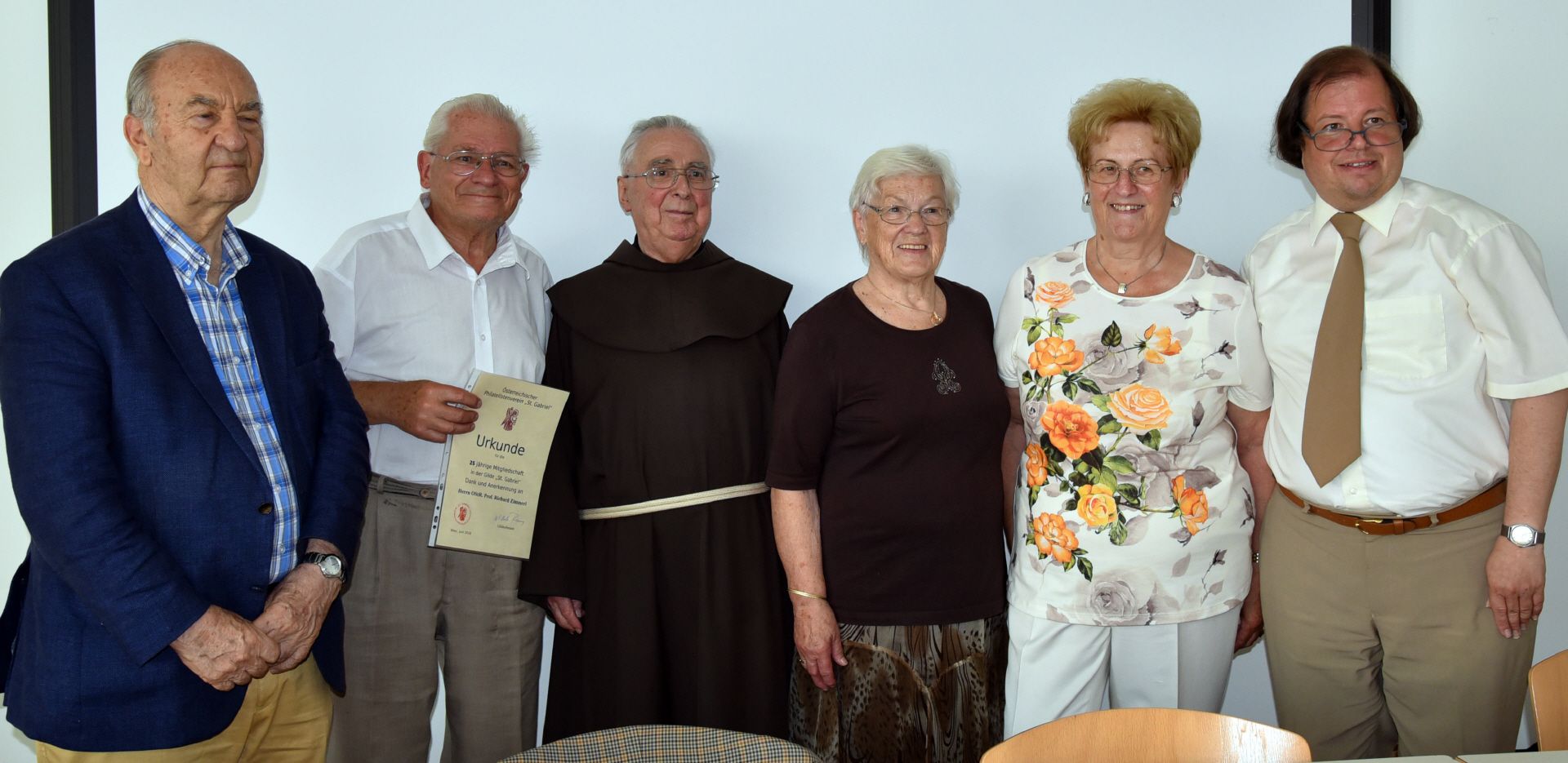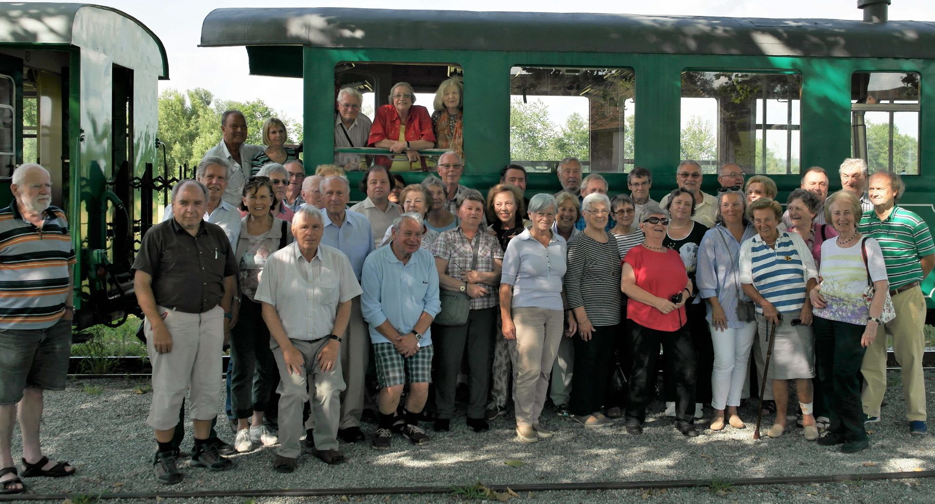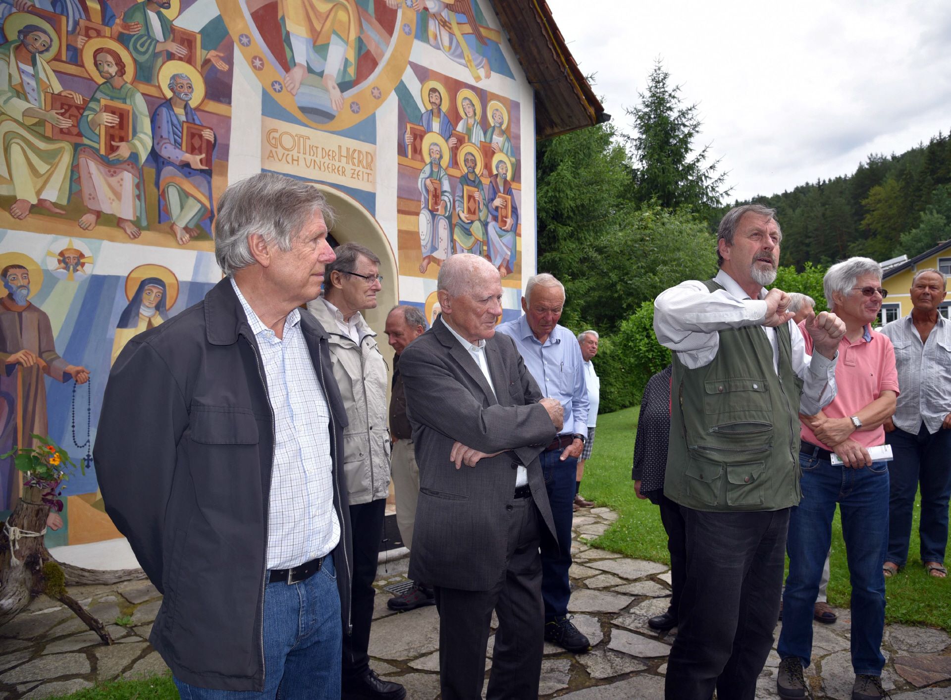 Der Gildeausflug am 9. Juni führte in die Weststeiermark, wo das vielfältige Oeuvre des steirischen Künstlers Franz Weiss in Tregist und eine Glaserzeugungs-Firma besichtigt als auch die allseits bekannte Hundertwasser-Kirche St. Barbara in Bärnbach besucht wurden, ehe man die recht turbulente Fahrt mit der Stainzer Bahn antrat. Ehrenmitglied Mag. Leopold Städtler und Domkapitular Mag. Josef Bierbauer zelebrierten in St. Stefan ob Stainz die Vorabendmesse. Abschließend wurde dem Schilcherland durch einen Besuch einer hoch gelegenen Buschenschank die entsprechende Ehre erwiesen. Der Sonntag-Vormittag war wie alljährlich von der Vorstandssitzung bzw. von der Vollversammlung ausgefüllt, nicht ohne die bemerkenswerte Ehrung von Fr. Didaktus Sudy ofm für seine 60-jährige Mitgliedschaft beim österreichischen Philatelistenverein St. Gabriel vorzunehmen.