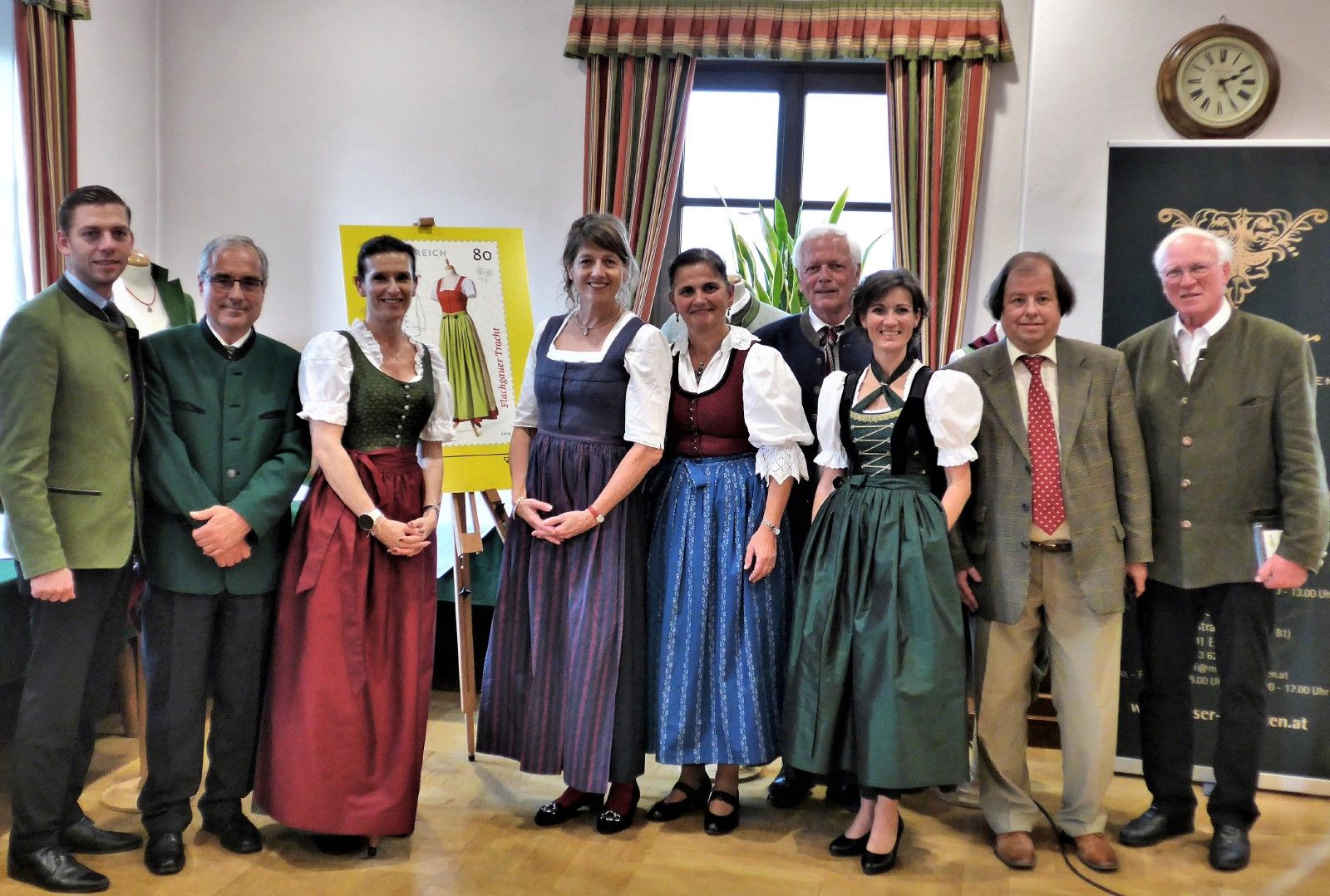 Franz Radauer konnte am 25. Oktober 2019 aufgrund seines Heimvorteils in Eugendorf im Gasthof Holznerwirt eine originelle Präsentation der Briefmarke der Flachgauer Tracht auf die Beine stellen. Man spürte den Zusammenhalt der Gemeindebewohner – jeder leistete seinen Beitrag, damit die Veranstaltung ihren unvergesslichen Charakter bekam. Naturgemäß stand die Tracht im Mittelpunkt: Cäcilia Althuber erklärte die örtlichen Trachten vor Mag. Gerlinde Scholler und Anita Kern, die ebenfalls in Tracht erschienen waren.