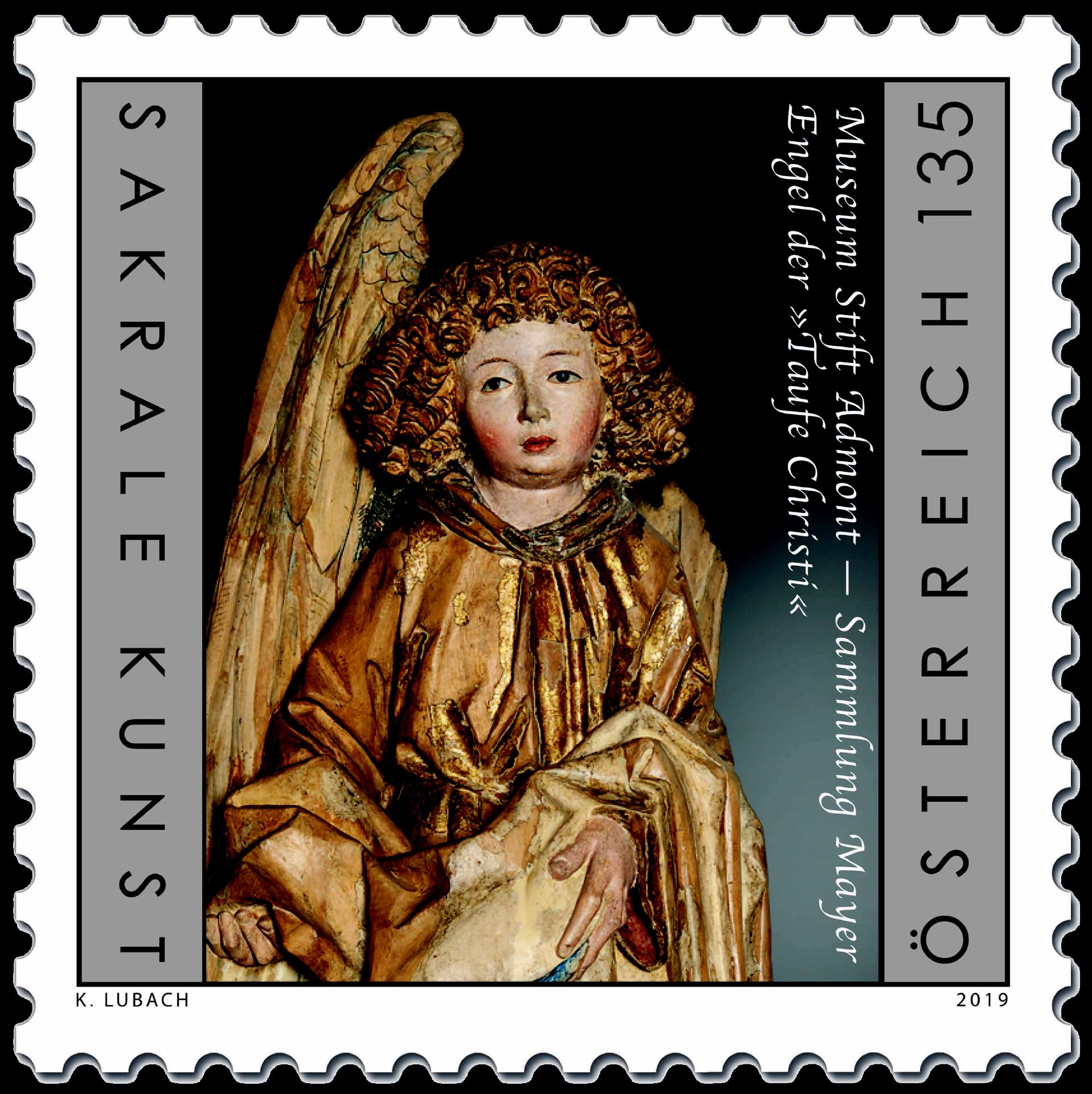 Nach 2010 (Sondermarke „Gebhardstab“) ist das Benediktinerstift Admont 2019 mit dem Motiv „Engel aus der Taufe Christi-Gruppe“ aus der Gotik-Sammlung Mayer erneut in der Sondermarkenserie „Sakrale Kunst“ vertreten. Besagtes Motiv ist Teil der Taufe Christi – Figurengruppe in Hochrelief, geschaffen um 1500 in der Werkstatt von Hans Klocker zu Brixen und ist in der 2017 eröffneten Gotik-Sammlung mit dem Titel „Dem Himmel nahe“ in der barocken Säulenhalle von Stift Admont ausgestellt.