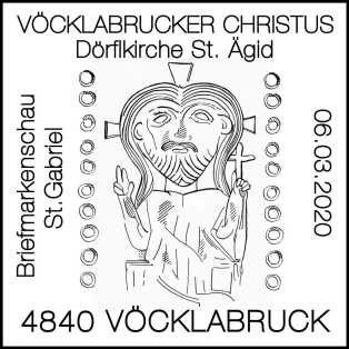Von 6.-8.März 2020 hält der österreichische Philatelistenverein St. Gabriel in Vöcklabruck seine jährlichen Gildetage mit Ersttag, Ausflug und Vollversammlung ab. 1978 wurden in der Dörflkirche St. Ägid vergoldete Kupferplättchen mit christlicher Thematik aufgefunden, die nun ins 8. Jahrhundert datiert wurden und dem langobardischen Kunstschaffen zuzuordnen sind. Das aussagekräftigste Motiv davon - der Vöcklabrucker Christus – ziert nun den 19. Wert der Briefmarken-Serie „Sakrale Kunst“. Gemeinsam mit dem BSV Vöcklabruck richten wir am 6. März im Pfarrsaal Vöcklabruck bei der Dörflkirche von 10-16 Uhr ein Sonderpostamt ein, begleitet von einer Briefmarkenschau, die bereits ab 9 Uhr geöffnet hat. Um 14.30 Uhr startet die Präsentation!