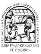 Belegprogramm – Weihnachten 2020 (Ersttagsbriefe, Maxikarten, pers. Marken) in vollem Umfang erhältlich – Bestellungen bei Hans Soriat möglich: bestellungen@st-gabriel.at bzw. unter 0664/9242994 erbeten!