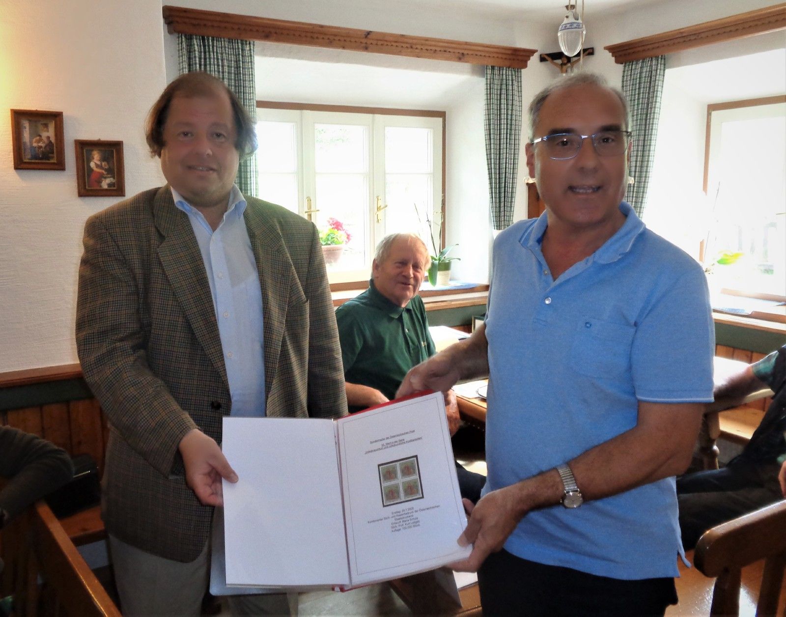 Nach Mondsee kamen rund 20 Mitglieder in der geräumigen Bauernstube der Erlachmühle bei Mondsee zusammen, darunter auch Ing. Walter Enzenhofer, der jüngst seinen 90. Geburtstag feierte. Erwin Hofbauer (VÖPH Regionalpräsident Mitte Region Mitte) überreichte Obmann Mag. Wilhelm Remes anlässlich seines 50. Geburtstages eine Einladung zum nächstjährigen Frankenburger Würfelspiel sowie ein philatelistisches Objekt zu diesem Thema. Hannes Eckl informierte über die neusten Entwicklungen zur Numiphil 2020, für deren Abhaltung in Wien noch eine passende Lokalität gesucht werden muss.