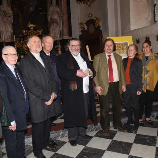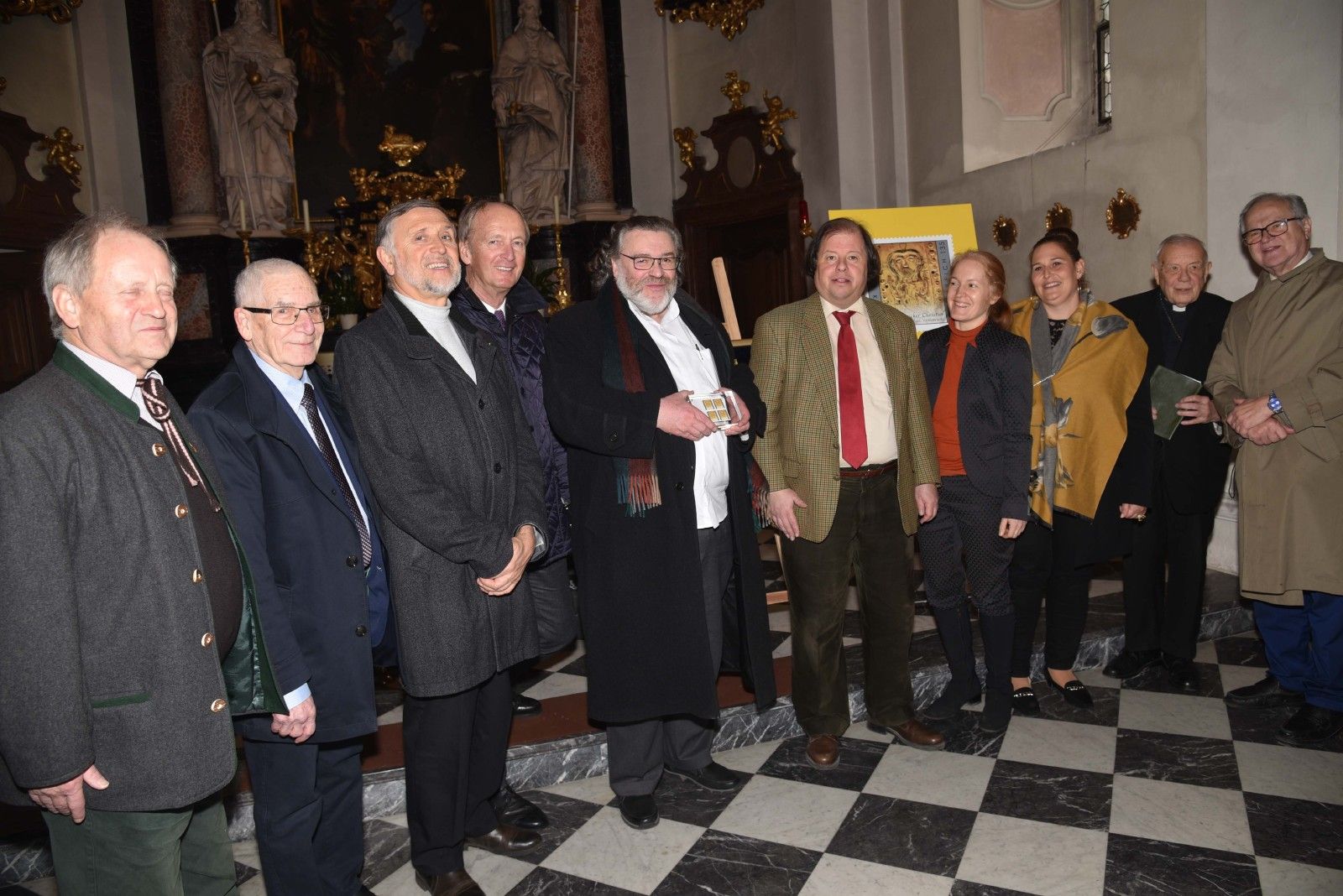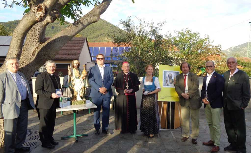 Dechant Mag. Othmar Hojlo, Pfarrer Mag. Peter Rückl, Christus Salvator-Statue (=Motiv der Briefmarke), Stefan Nemeth MBA, Bischof em. DDr. Klaus Küng, Kirsten Lubach (Graphikerin der Briefmarke), Mag. Wilhelm Remes (Obmann der Gilde St. Gabriel), Bürgermeister Dr. Andreas Nunzer MA, HR Dr. Karl Ohnmacht (Ehrenobmann Gilde St. Gabriel)
