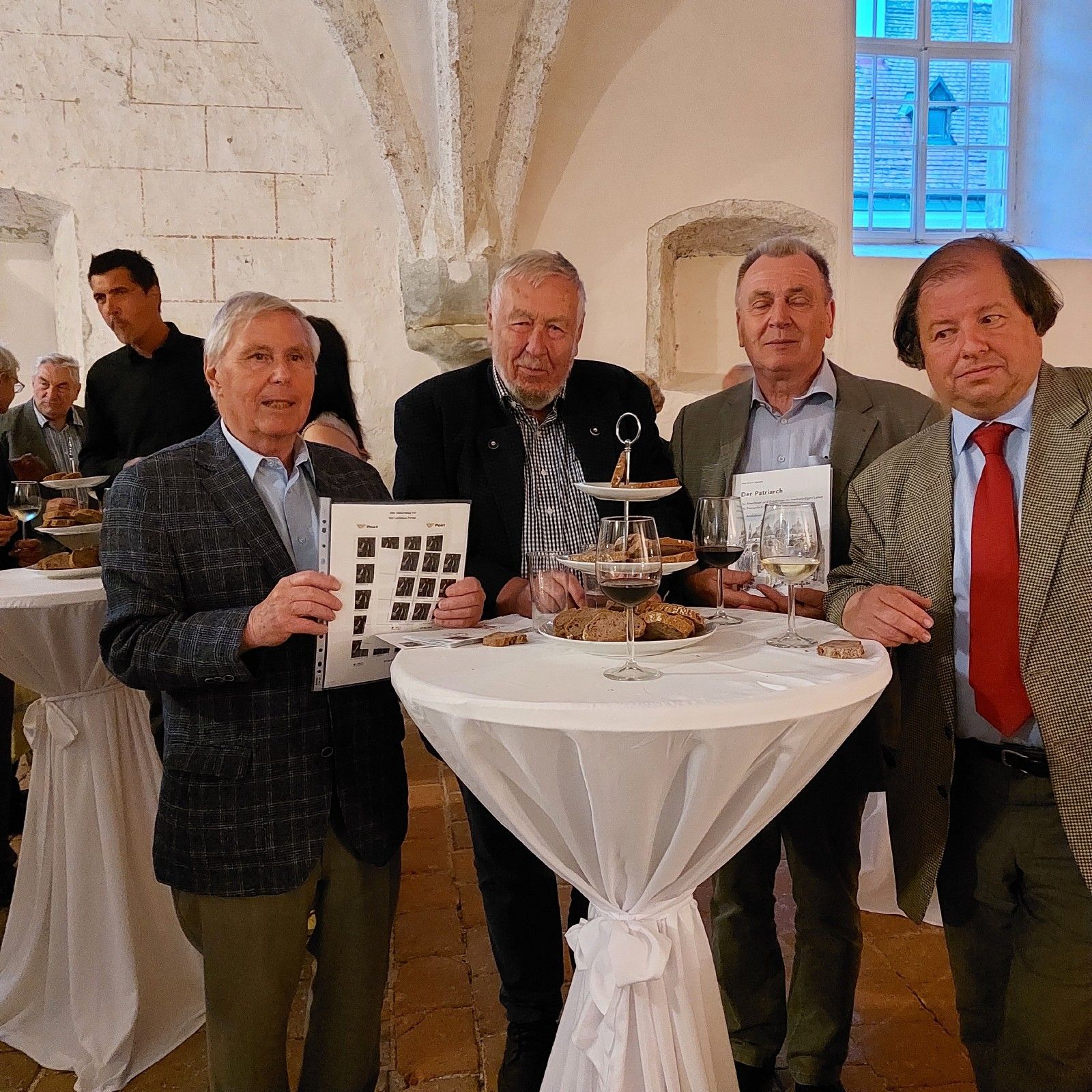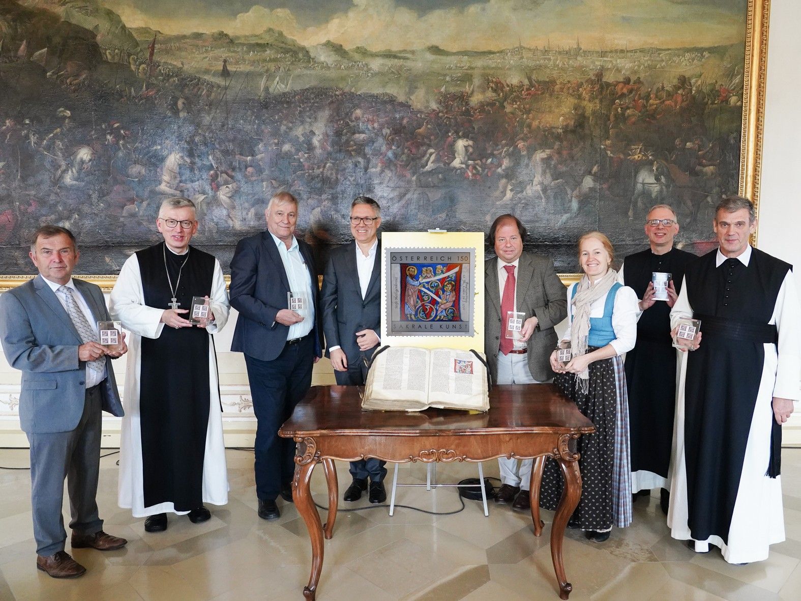 Nach den Gilde-Sommertreffen in Mondsee und Wien, der Einladung von Erwin Hofbauer zum Frankenburger Würfelspiel wurde der philatelistische Herbst mit einer Doppelveranstaltung in Stift Heiligenkreuz eingeleitet. Am 17. September 2022 konnte dort von Dr. Harald Kunczier MBA (Österreichische Post AG) im prachtvollen Kaisersaal mit der neuen Sondermarke „Paulusinitiale“ der 23. Wert der Serie Sakrale Kunst präsentiert werden. Der Rektor der phil.- theol. Hochschule Heiligenkreuz – P. Dr. Wolfgang Buchmüller stellte den die Paulusinitiale beinhaltenden Codex 26 aus der Handschriftensammlung im Detail vor. Abt Dr. Maximilian Haim präsentierte zudem die personalisierte Briefmarke mit dem neuen Altarbild von Clemens Fuchs, die die Seligen Sr. Maria Gabriella Sagheddu und P. Anastasius Brenner zeigt und beim Sonderpostamt am 18. September 2022 (Kreuzerhöhungssonntag) zum Einsatz kam.