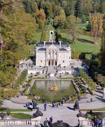 Das schönste Wetter der Reise stellte sich am vierten Tag ein mit der Fahrt in den Oberammergau. Allerdings umhüllte vorerst hartnäckiger und dichter Nebel die ehem. Augustiner Stiftskirche in Rottenbuch und anschließend die Benediktinerabtei Ettal. Rottenbuch erwartete uns mit Rokoko-Zauber in gotischem Gehäuse, wie ein roter Faden zog sich die Lebensgeschichte des hl. Augustinus durch das von Matthäus Günther geschaffene Freskenprogramm. Den landschaftlichen Höhepunkt des Besichtigungstages bildete freilich Schloss Linderhof im Grasswangtal – ganze zwei Autobusse steuerten das ansonsten touristenüberlaufene Schloss des exzentrischen bayerischen König Ludwigs II. an, das einzige Schloss, das er vollenden und auch länger bewohnen konnte. Die churrigueresk-üppige Innenausstattung des Schlosses musste man erst verkraften – der romantische Schlosspark mit seinen Götterwesen und Wasserkaskaden und exotischen Häusern beeindruckte aber jedermann! Den Mittagsaufenthalt legten wir in Oberammergau – dem Zentrum der Lüftlmalerei – ein. Unser Reiseleiter Willi Deuer verstand es uns in einem Minimum an Zeit vorbei an einem Maximum von opulent freskierten Häusern zu führen! Die Superlative des bayerischen Kirchenrokokos stand uns noch bevor – die Wallfahrtskirche zum gegeißelten Heiland – kurz Wieskirche genannt: Die Gebrüder Zimmermann schufen hier einen „Tanzsaal Gottes“, der aus einem ovalen Rundbau und einem Quer-Rechteckraum gebildet wird, durchströmt von züngelnder und flirrender Raumbewegung. Beschaulich hingegen war wiederum unsere letzte Besichtigung des Tages – das ehem. Prämostratenserkloster Steingaden – eine Welfengründung, dessen Basilika uns mit einer romanischen Zweiturmfassade empfing, im Inneren jedoch erneut eine barocke bzw. Rokoko-Ausstattung aufwies; dieses Mal stand die Biographie des Ordensgründers Norbert von Xanten im Mittelpunkt. Für einen Teil der Gruppe beschloss sich der programmreiche Tag mit einer hl. Messe in Schongau, bei dem wir ein ungemein strenges Corona-Regime zu spüren bekamen – selbst Eheleute durften nicht beisammensitzen und der kommunionspendende Pfarrer wurde durch mobile Glasparavents abgeschirmt.